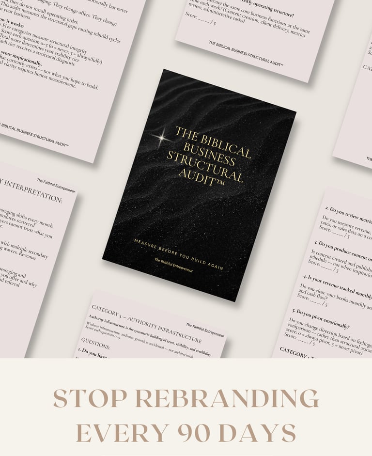 You've rebranded. You've repositioned. You've launched new offers. But revenue still fluctuates. Momentum still resets. Structure still collapses. The problem isn't effort. The problem is you've never measured what exists. Most Christian entrepreneurs rebuild emotionally but never audit structurally. They change messaging. They change offers. They change direction. But they do not measure the foundational gaps causing rebuild cycles. That's what a business audit does. It measures before you build again.