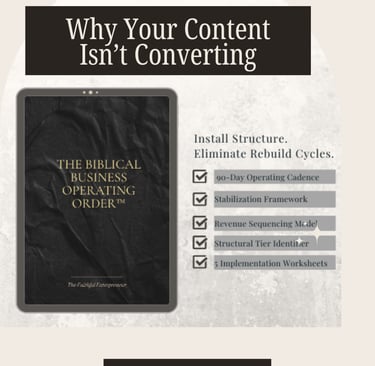 Faith-driven entrepreneurs don’t usually have a marketing problem — they have a sequence problem. Discover why structure, clarity, and Biblical operating order must come before visibility, scaling, and revenue growth.