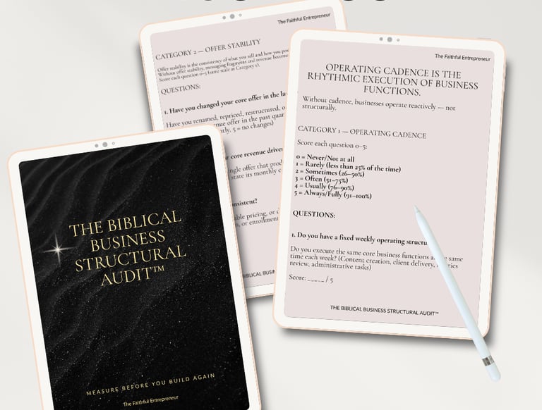 This is precisely why I built the Biblical Business Operating Order™. It was not designed to give you more motivation or another content calendar. It was built to diagnose where your business is operating out of sequence and to install the correct order so growth becomes sustainable rather than chaotic. If you are currently attempting to “market harder” while your structure is unclear, this is where you pause and reassess. The application for the Biblical Business Operating Order™ is where that diagnostic work begins. It is not about adding more tactics. It is about aligning what already exists so it can function properly.